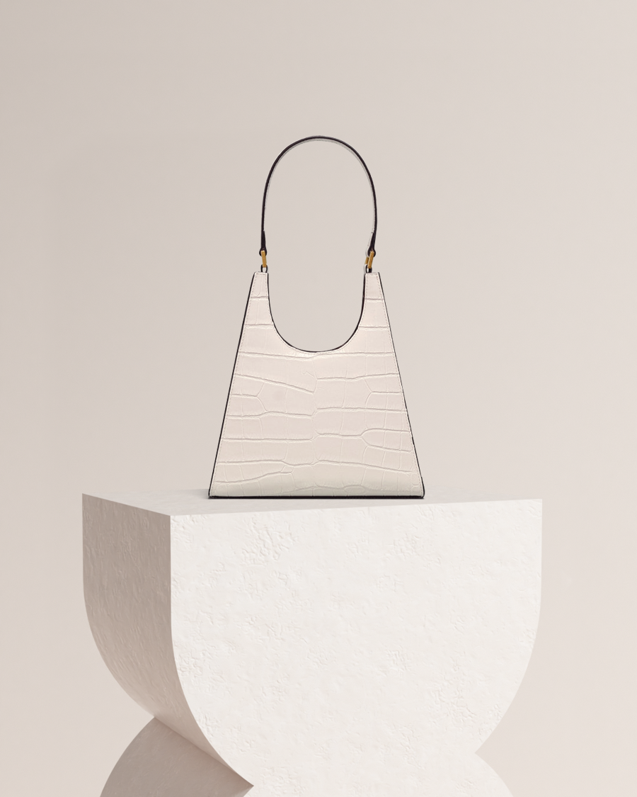 Chelsea, your new daily all-purpose bag is here. Smooth and embossed leather combined with a daring shape will surely turn heads everywhere you go.